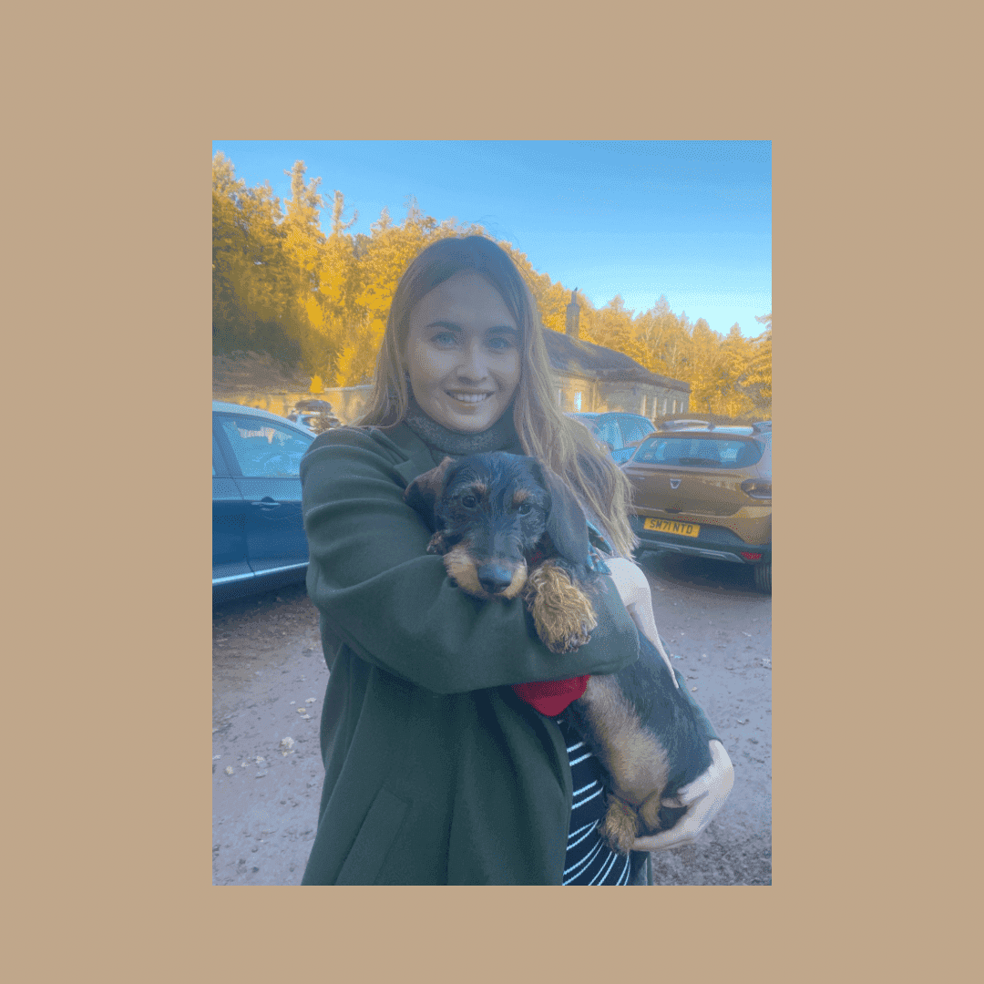 🐾 Mum to a mischievous sausage dog, Magnus. He’s my little inspiration engine, and some of my most original concepts are hatched with him.